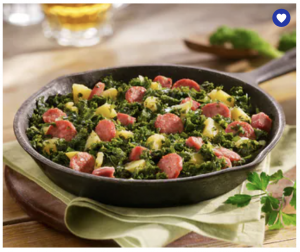 Westfäliches Grünkohlgericht00554 Aromatischer Grünkohl, verfeinert mit saftigen Kasselerstücken, herzhaften Mettwurstscheiben aus Schweinefleisch und Kartoffelwürfeln. Abgerundet mit Speck und Zwiebeln. Fix und fertig zubereitet. | ![]() | |