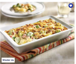 Rosenkohl-Kassler Auflauf01278 Meisterlicher Rosenkohl-Genuss. Herzhafter Auflauf mit zarten Rosenkohl-Röschen, würzigen Kasselerwürfeln und leckeren Kartoffeln in einer kräftigen Sahnesoße, mit Käse überbacken. Ein deftiges Gericht für Herbst- und Wintertage. | ![]() | |